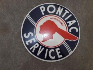 Porcelain Pontiac Service Enamel Sign Size 6" Inches Round