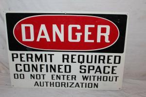 Vintage Danger Permit Required Confined Space Gas Oil 20" Metal Sign