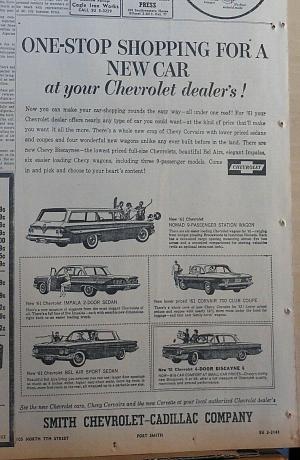 1960 newspaper ad for Chevrolet - 1961 Nomad wagon, Corvair Club Coupe, Impala +