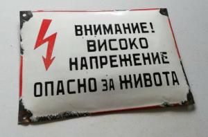 ENAMEL INDUSTRIAL SIGN WARNING HIGH VOLTAGE ELECTRICITY LIFE DANGER VINTAGE 1970