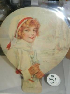 vintage hand fan w/pretty girl.. advertisement Binghamton New York. OK Ice Creme