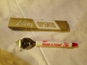 Vintage SNAP-E-TOM Tomato Cocktail 2-Way Bottle and Can Opener w/ Package
