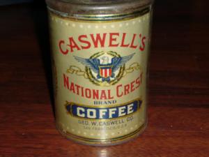 Early Caswell coffee tin can Americana Eagle San Francisco