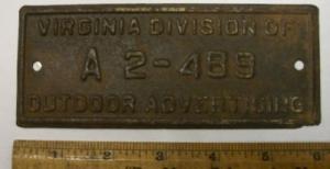 Vintage Virginia Outdoor Advertising License Plate Not Automobile Date Unknown