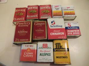 LOT OF 12 vintage spice tins Schilling, Ben-hur, McCormick, Crown Colony, & more