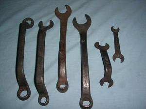 SET OF 6 VINTAGE FORD SCRIPT MODEL A? AUTOMOBILE WRENCHES - 17017 - BOX & OPEN