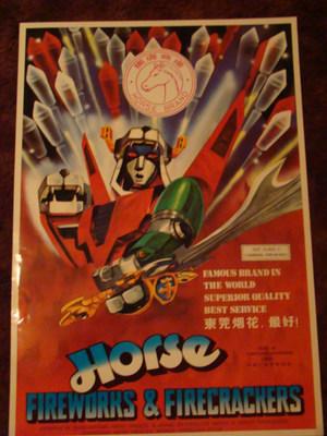 VINTAGE HORSE BRAND FIREWORKS POSTER Advertising Sign EXCELLENT COND