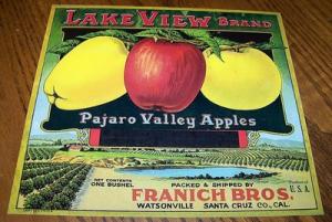 VINTAGE 30'S "LAKE VIEW" CALIFORNIA PAJARO VALLEY APPLES CRATE LABEL