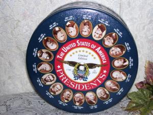 US PRESIDENTS TIN BOX PHOTOS NAMES DATES OF US PRESIDENTS WASHINGTON - CLINTON