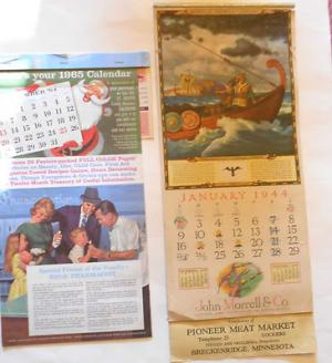 Vintage Calendars 1944 & 1965 Rexall Drug & John Morrell & Co