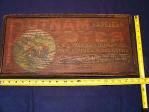 Vintage 1940's?? Putnam Dye WOOD Original Sign 2-sided Factory Fabric Sewing