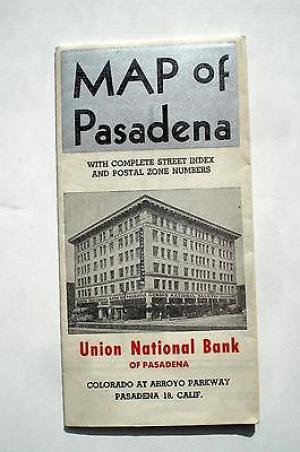 Pasadena California City Map by Union National Bank 1946