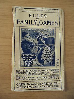 Antique 1899 "RULES for FAMILY GAMES"~Carrom-Archarena Co~Ephemera~SANTA CLAUS~
