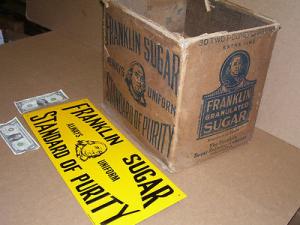 SUGAR SIGN - BEN FRANKLIN -- Embossed Metal -Shows Mr. Ben - OLD SIGN Dated 1991