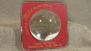 Advertising Magnifying Glass Dome Paperweight from Leduc Motor Co, Turlock FORD