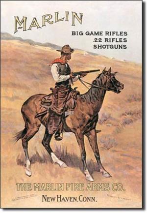 Marlin Big Game Rifles Cowboy Horse Gun TIN SIGN vtg ad art wall decor DS#238