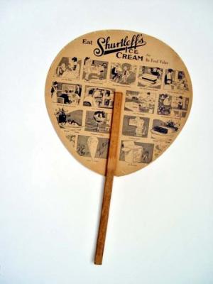 VINTAGE 1920s JANESVILLE, WISCONSIN SHURTLEFFS ICE CREAM ADVERTISING SIGN FAN