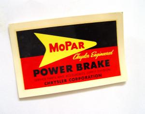 ORIGINAL 1950-60s MOPAR CHRYSLER AUTOMOBILE POWER BRAKE ADVERTISING SIGN DECAL