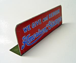 COUNTERTOP 1950s GIVE REDEEM AMERICAN STAMPS SALES PREMIUM TIN ADVERTISING SIGN