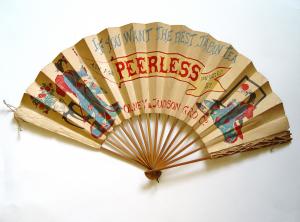 EARLY VINTAGE ORIGINAL EARLY 1900s PEERLESS TEA CO. ADVERTISING SIGN HAND FAN