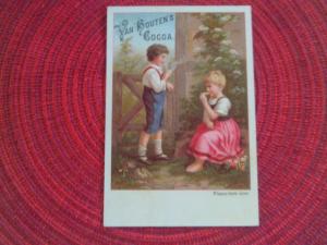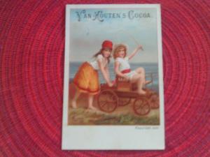 RARE 1880s TRADE CARD AD VAN HOUTEN''s CHOCOLATE ROYAL COCOA FACTORY HOLLAND KIDS