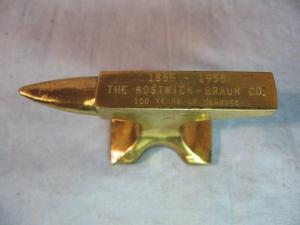 1955 Brass Advertising Anvil 100 Years of Service The Bostwick-Braun Co.