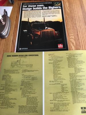 1974 DODGE BIGHORN CNT-950 LONG CONVENTIONAL & SPECIFICATION OPTION POSTER- WOW