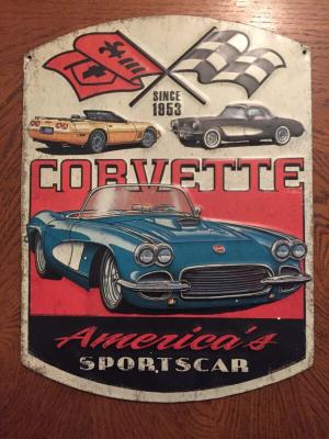 Official GM Corvette 14.5" X 11" Embossed Metal Sign