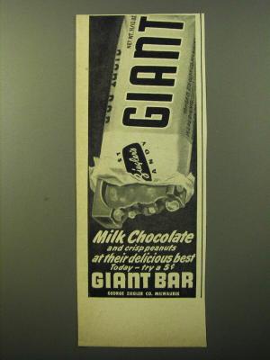 1949 George Ziegler Giant Bar Advertisement - Milk chocolate and crisp peanuts