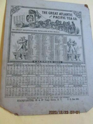 RARE VINTAGE 1883 CALENDAR GREAT ATLANTIC AND PACIFIC TEA CO CARDBOARD CAT A& P