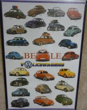 Poster of Volkswagens VW Bugs down through the years. Size 36” X 23”