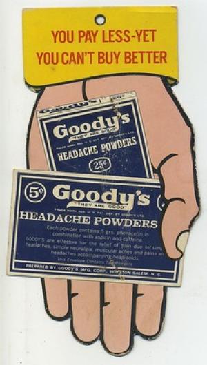 Vintage Fan Pull Sign - GOODY'S HEADACHE POWDERS - Great Graphic