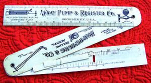 FOLDABLE 6 INCH CELLULOID RULER -WITH ADVERTISING-WRAY PUMP & REGISTER.CO ROCHES