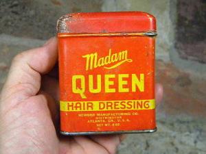 MADAME QUEEN Hair Dressing Antique Tin - HAIR POMADE - NEWBRO MFG. ATLANTA GA.