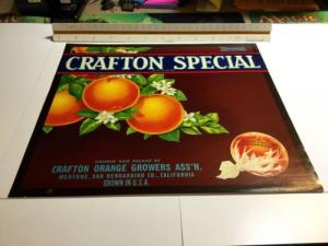 CRAFTON SPECIAL BRAND RARE ORANGE CRATE LABEL MENTONE SAN BERNARDINO VINTAGE