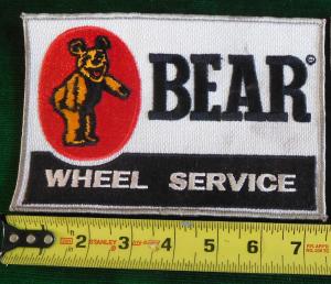 Large 1940''s ANTIQUE BEAR ''WHEEL SERVICE'' EMBROIDERED BACK SEW-ON PATCH AUTO