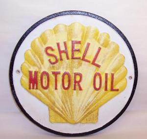 Vintage SHELL MOTOR OIL Cast Iron ADVERTISING SIGN Garage/Workshop - 8.25" Diam