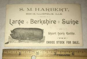ANTIQUE FARM CALLING BUSINESS CARD ILLIOPOLIS ILLINOIS IL BERKSHIRE SWINE PIG