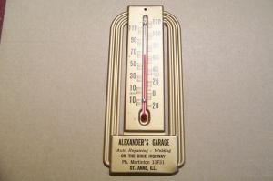 Old Advertising Metal Thermometer Alexanders Garage St. Anne Illinois IL