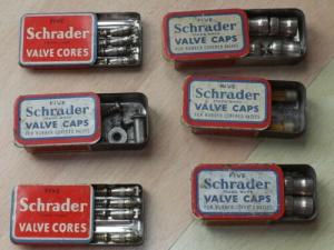 Collection Of 6 x 1920s A Schraders Son Schrader Valve Caps & Valve Cores Tins