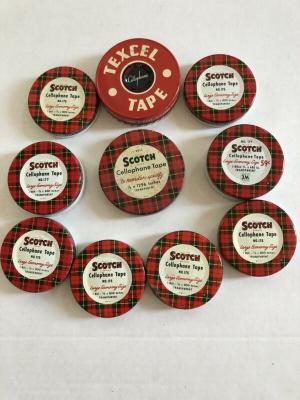 Lot of 10 Vtg Cellophane Tape Tins Texcel Scotch