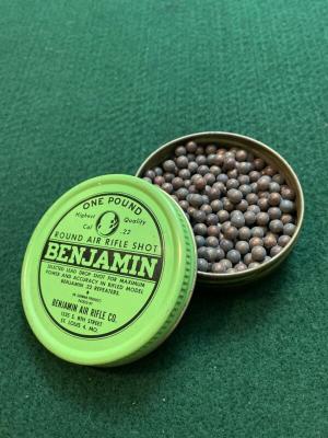 BENJAMIN .22 CAL ROUND AIR RIFLE SHOT IN ORIGINAL TIN