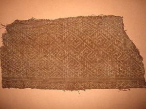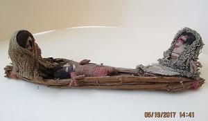 Pre-Columbian Peruvian dolls with two women and a baby in a boat.