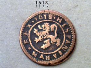 AWESOME!!! SPANISH PIRATE COIN 4 MARAVEDIS OF THE KING PHILIPPVS III. (1618)
