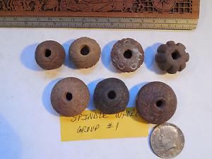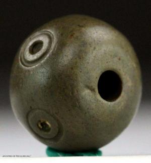 120) Pre Columbian Moche Chimu Indian Stone Spindle Whorl "Eyes" Bead Artifact