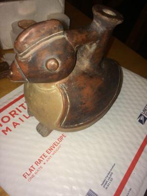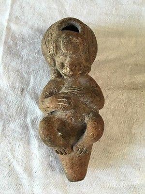 Pre-Columbian Mexican clay/terracota pipe with figure pottery ceramic 5"