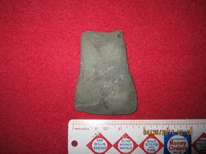 3 1/2" FLARED BIT HARD STONE CELT ( " SHAGINAPPI SITE ", NEAR- PIPE, WISCONSIN )
