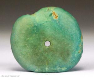 52) Ancient Pre Columbian Moche or Chimu Mosaic Turquoise Stone Disc Bead
