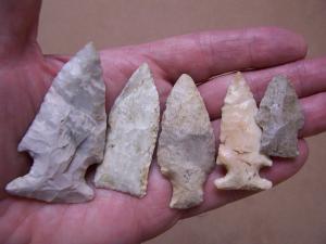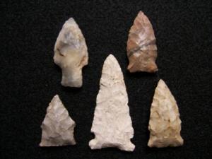FIVE AUTHENTIC CHERT POINTS FROM THE JIM BUSSEY COLLECTION