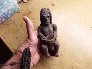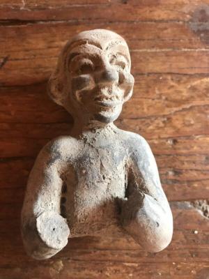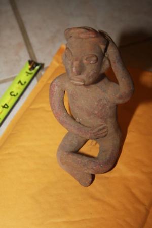ANTIQUE FIGURINE-TRIBAL-AZTEC MAN?MEXICO CITY-POTTERY-CLAY-PRE COLUMBIAN?4.25in